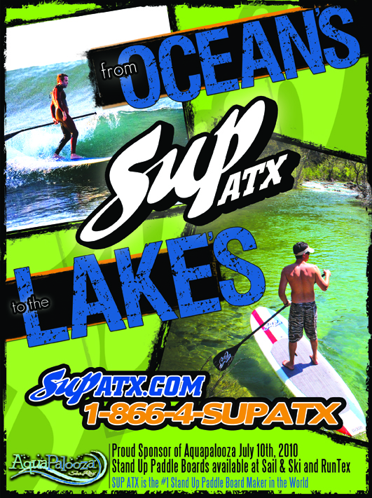 SUP ATX is sponsor of Aquapalooza on Lake Travis taking place on July 10, 2010.